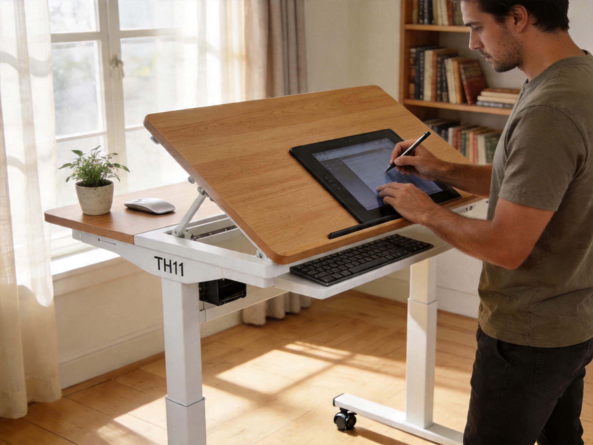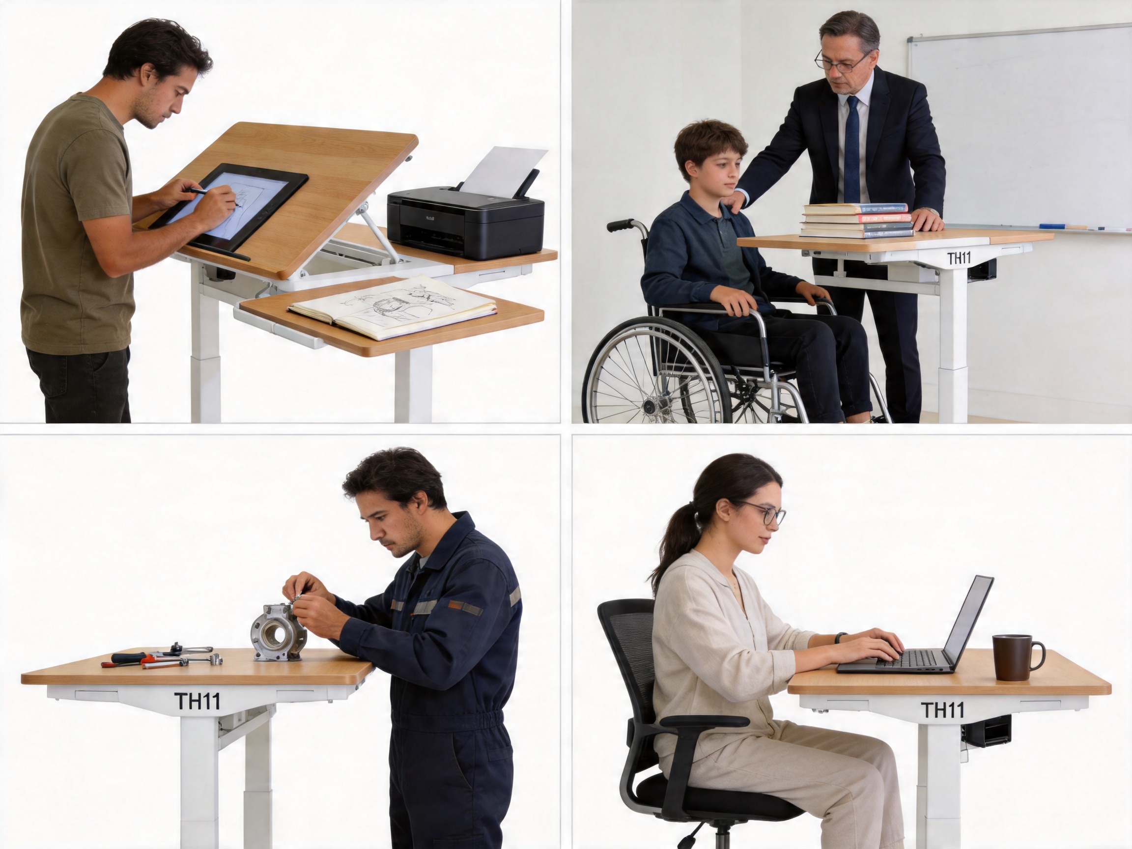 Graphic designers, illustrators, and photographers need a workspace that adapts to their creative process. The TH11’s tilt function (0°–30°) is ideal for drawing on a tablet or sketching on paper, as it aligns the work surface with the user’s line of sight. The aluminum-iron frame is sturdy enough to support heavy equipment (like a graphics tablet or printer), and the concealed casters allow artists to move their desk to different areas of the studio (e.g., near a window for natural light). For example, a graphic designer can tilt the TH11 to a 25° angle to draw on a tablet, then switch to flat position to use their laptop for editing.
