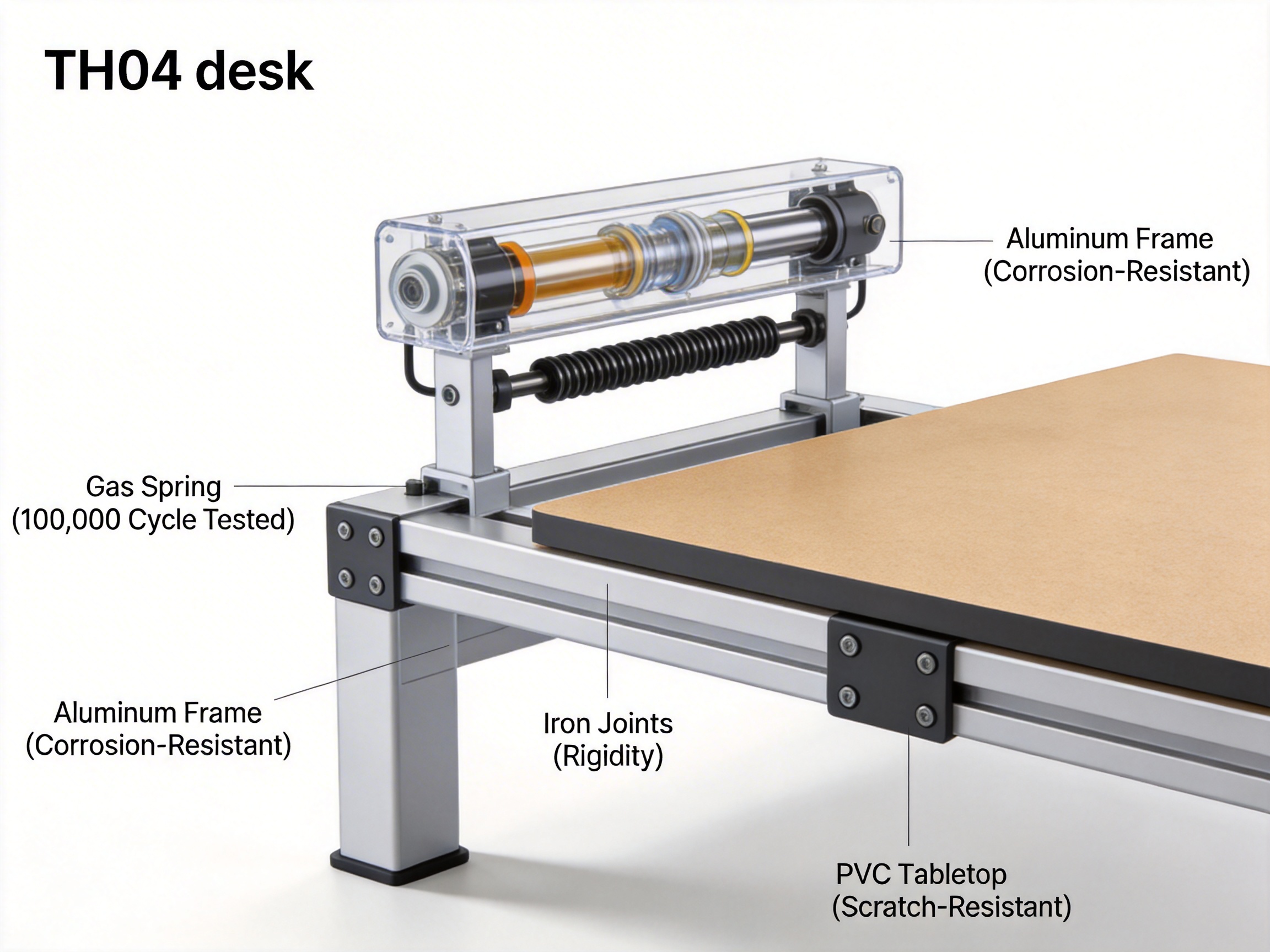 One of the key benefits of the gas spring system is its consistency. Unlike manual crank desks, which can become stiff over time or require multiple rotations to adjust, the TH04’s gas spring maintains a smooth motion for up to 100,000 cycles—far exceeding the industry average of 50,000 cycles. This means the desk will retain its functionality for years, even with daily use.