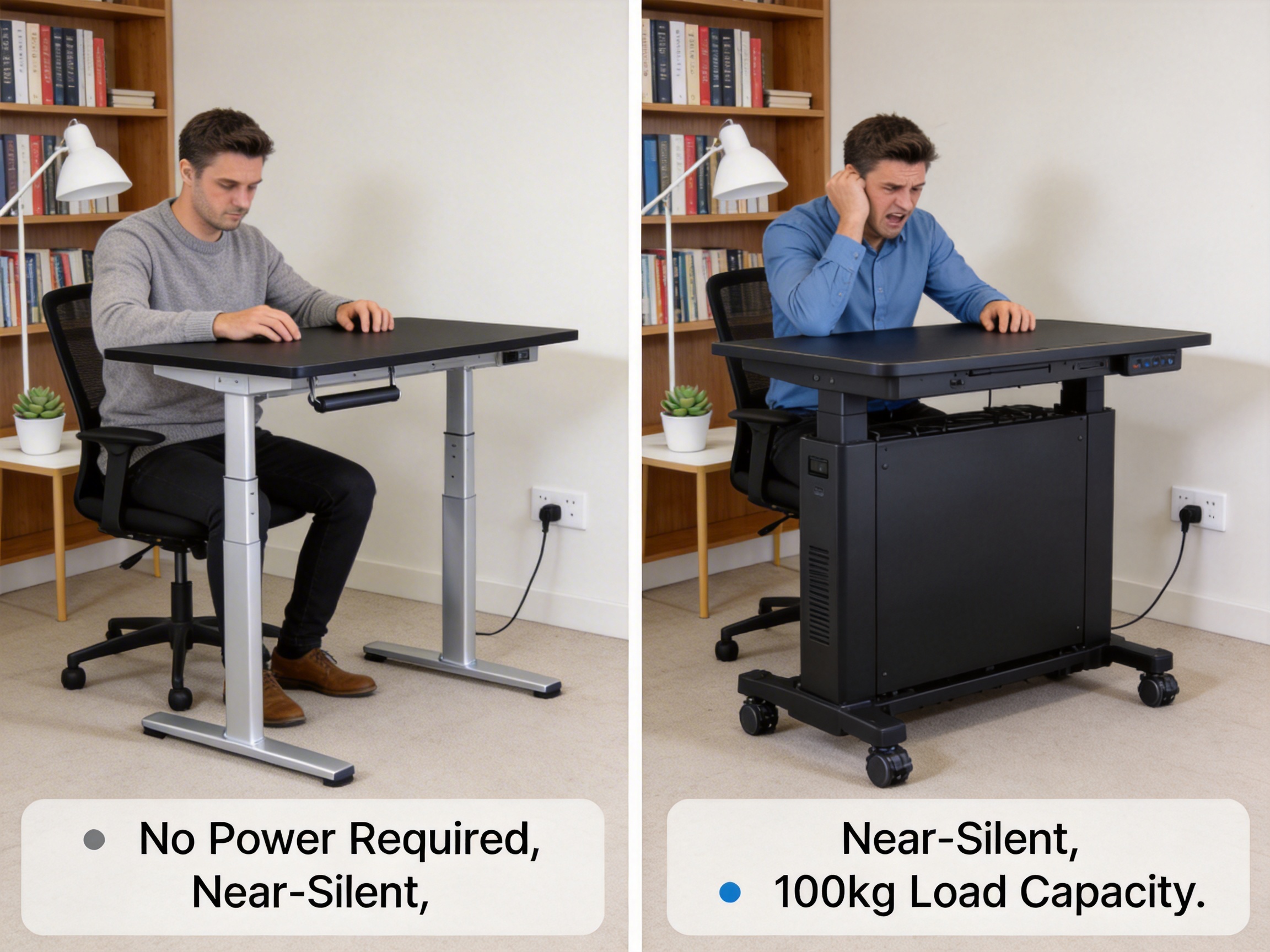 Electric desks are popular for their motorized adjustments, but they have several drawbacks that the TH04 addresses: - No Power Requirement: Electric desks need to be plugged in, limiting their placement to areas with power outlets. The TH04’s gas spring system operates without electricity, making it ideal for labs, studios, or outdoor workspaces where power may be scarce. - Quieter Operation: Electric motors can be noisy, especially when adjusting height frequently. The TH04’s gas spring system is nearly silent, making it suitable for quiet environments like libraries or open-plan offices. - Lower Maintenance: Electric motors are prone to wear and tear, requiring repairs or replacements over time. The TH04’s gas spring system has no moving parts that need regular maintenance, reducing long-term costs. - More Affordable: Electric desks typically cost 30-50% more than pneumatic desks like the TH04, making it a cost-effective choice for businesses and individuals.