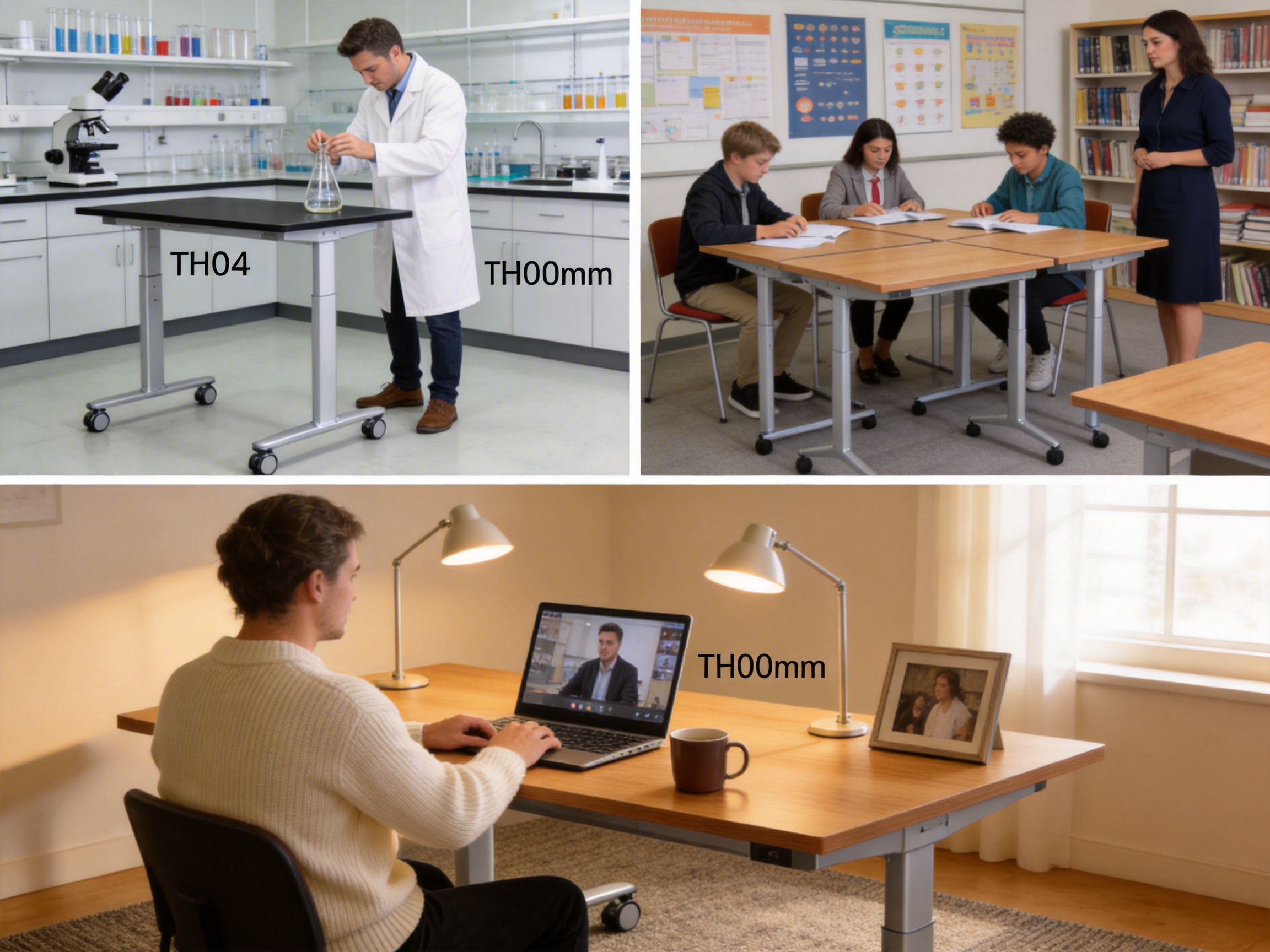 Laboratories and studios often require adjustable surfaces for different tasks. For example, lab technicians may need to stand while using a microscope, or sit while recording data. The TH04’s wide lifting range (720mm-1200mm) makes it ideal for these environments. The desk’s durable frame and easy-to-clean tabletop are also suitable for labs, where spills and stains are common.