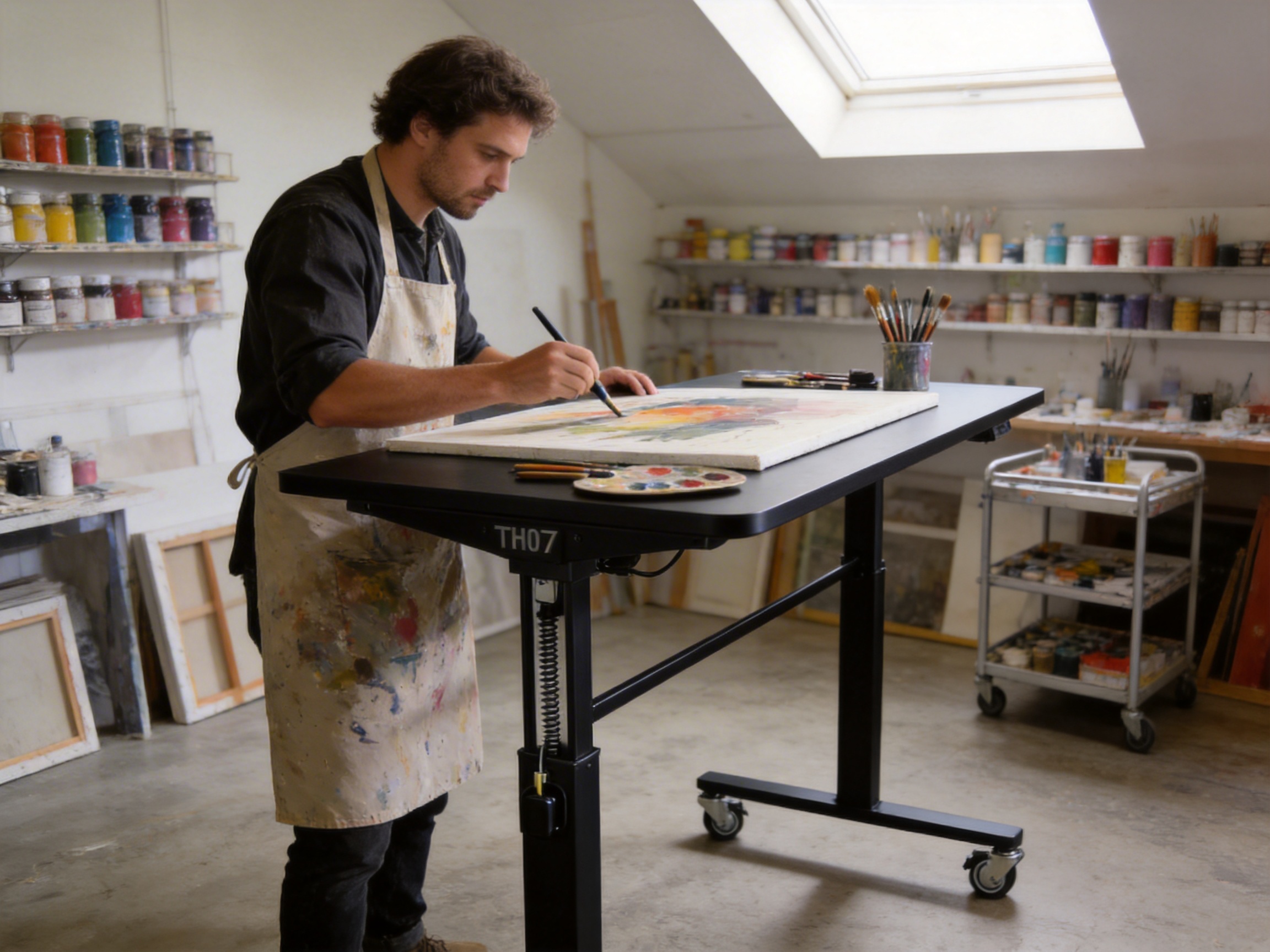 “I’m an artist and use the TH07 in my studio. The adjustable height allows me to stand when I’m painting large canvases, which is much better for my posture. The casters are smooth and don’t scratch my hardwood floors. I love the Black finish—it looks great in my studio. The gas spring mechanism is silent, so it doesn’t distract me when I’m working.” — Lisa, a professional painter.