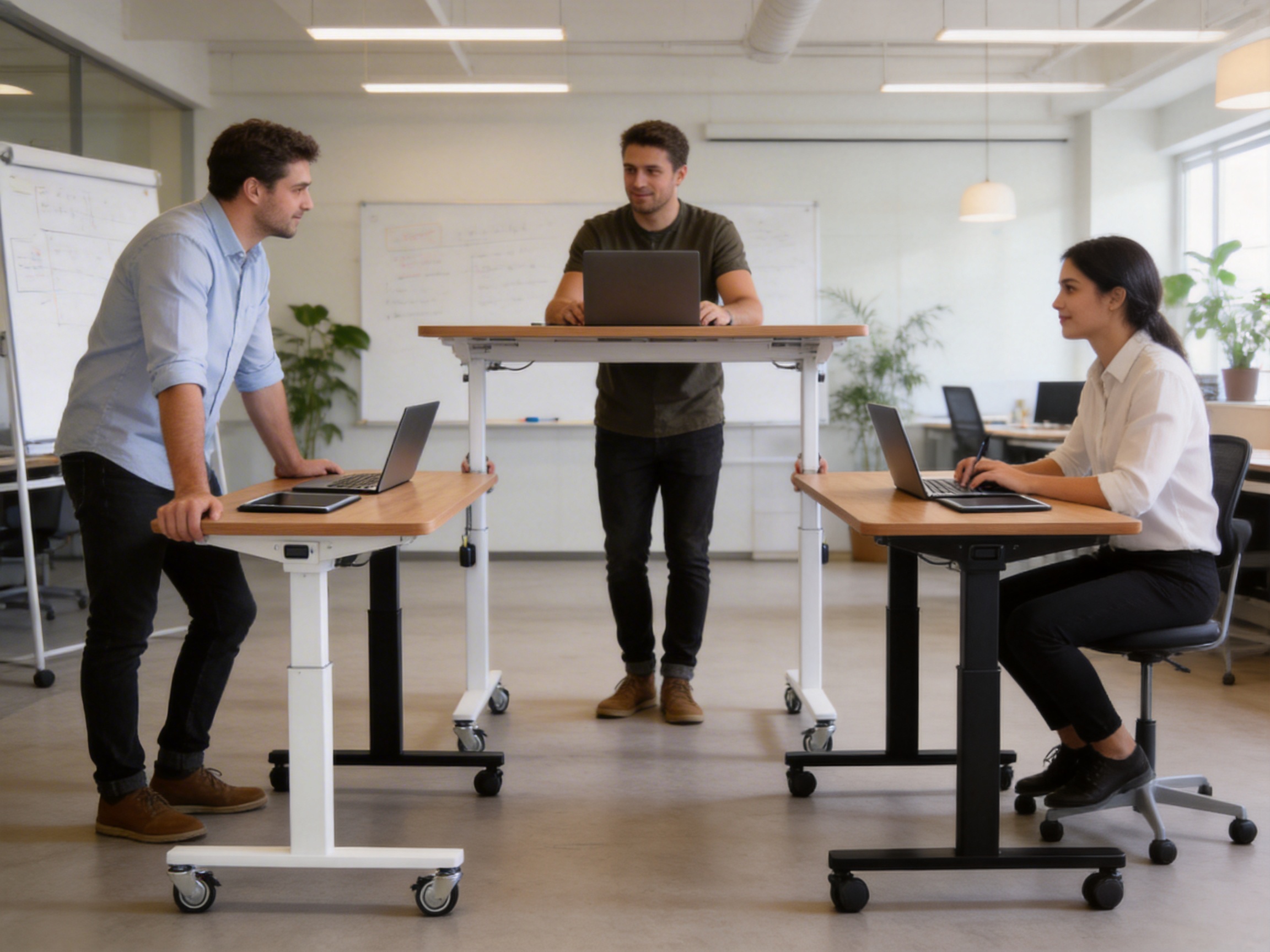 For example, a team of developers can use the TH07 to collaborate on a project. They can move the desks together to form a meeting table, then adjust the height to a standing position for a brainstorming session. After the meeting, they can move the desks back to their individual workstations.