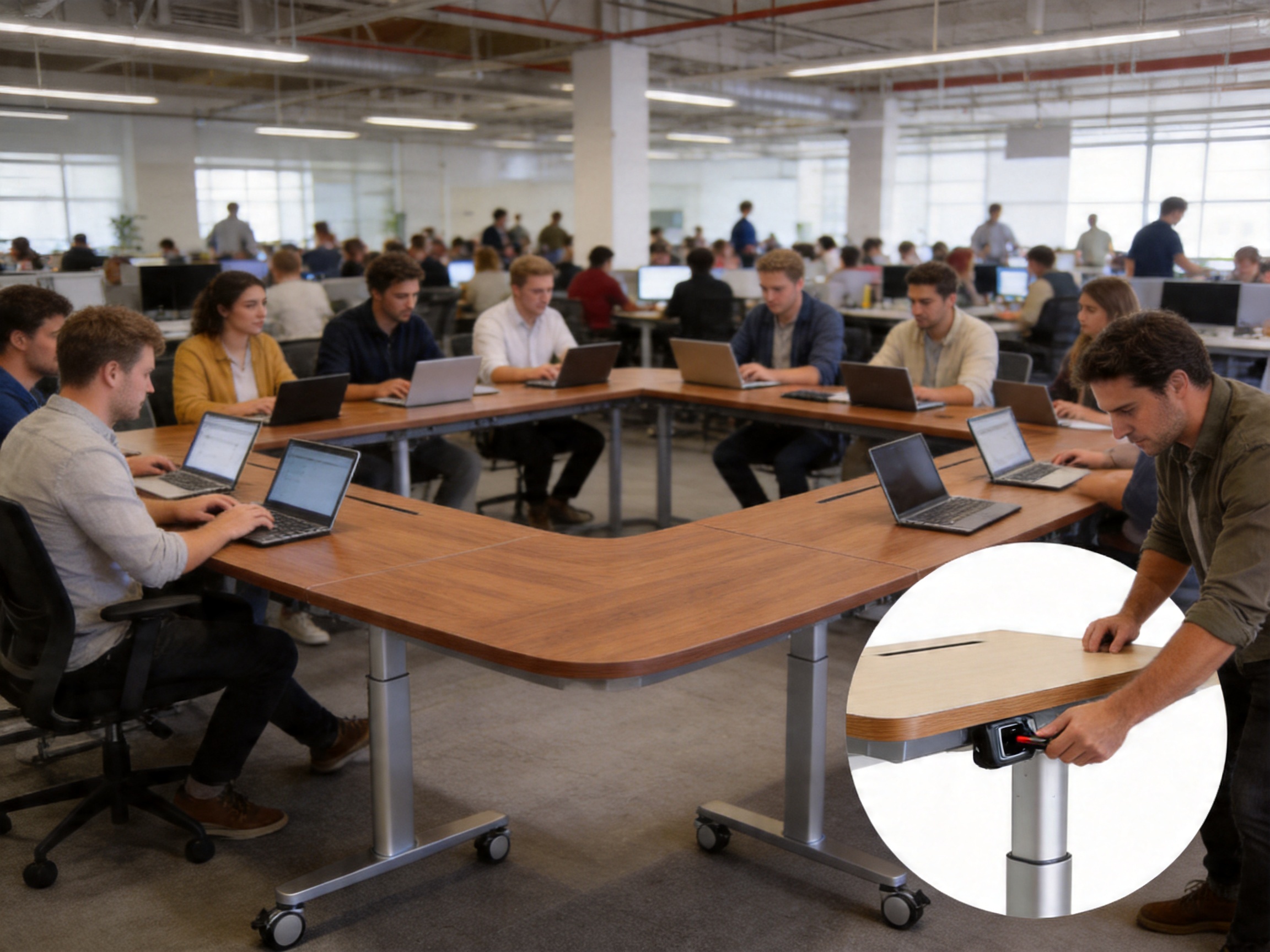 A tech startup in Shanghai recently switched from fixed desks to the TH08 for its 100 employees. The company’s goal was to reduce musculoskeletal issues among employees and increase collaboration. After six months of use, the results were impressive: