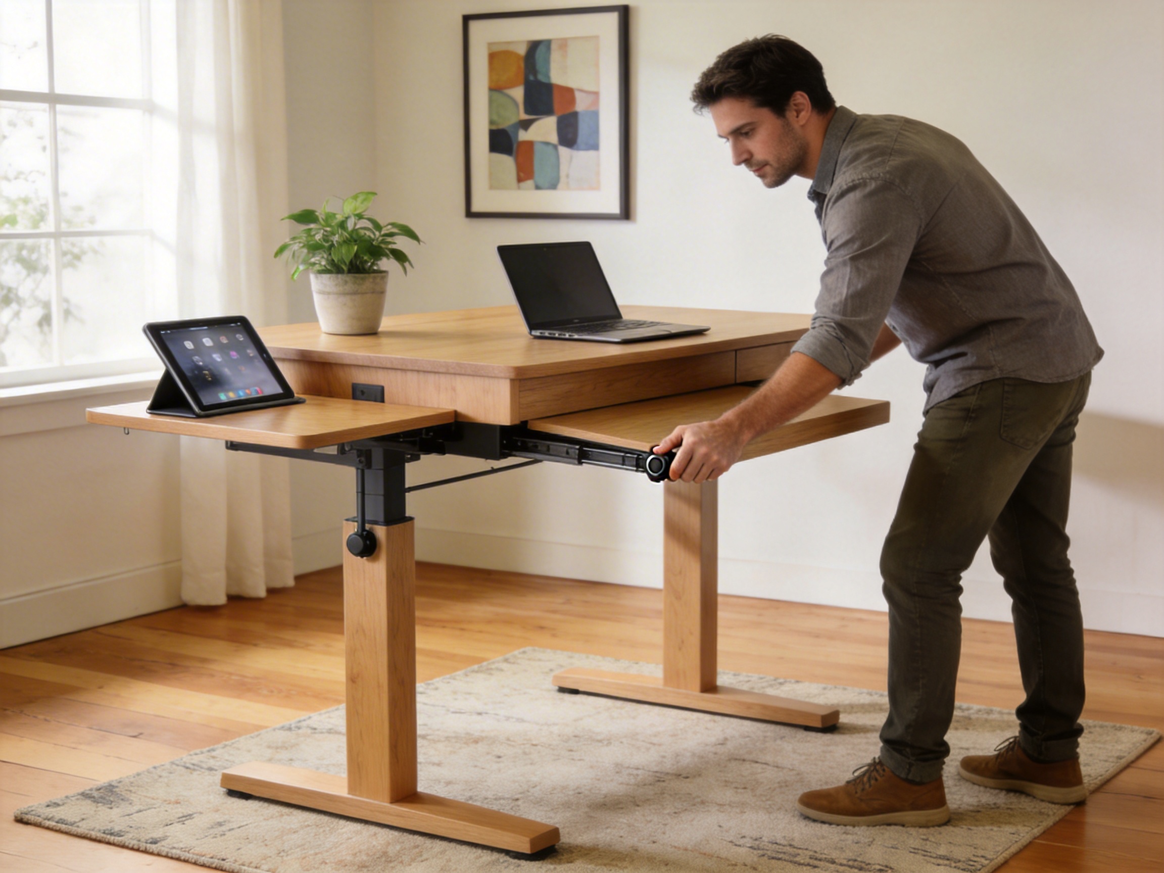 Sarah, a graphic designer from New York, says: “I work from home 3 days a week, and the TH11 desk has transformed my productivity. The tilt function is perfect for my tablet work—no more hunching over! I can switch from sitting to standing in seconds, which has reduced my back pain. The maple wood panel matches my living room decor, so it doesn’t look like an office desk at all.”