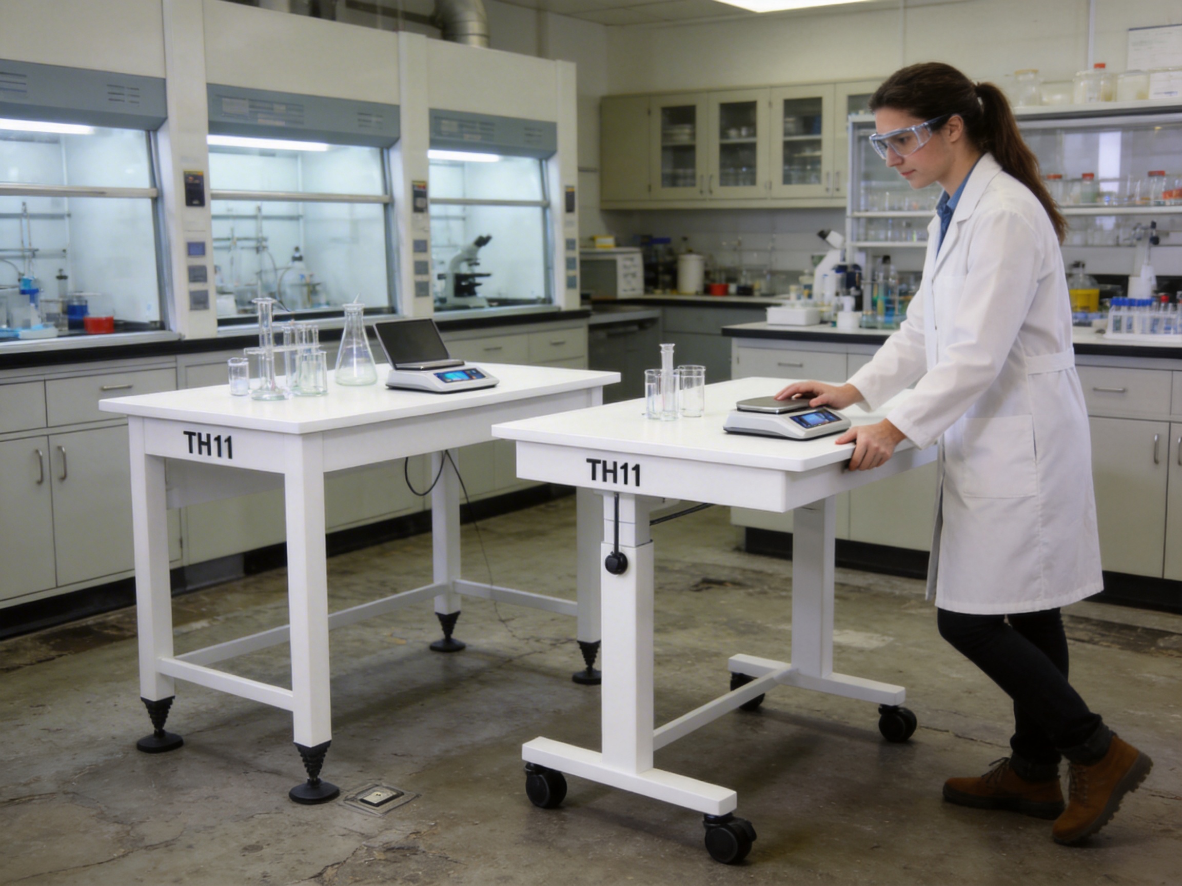 Mike, a lab technician in London, notes: “We use the TH11 desks in our chemistry lab for equipment setup. The leveling feet keep the desk stable even on our uneven lab floors, and the concealed castors make it easy to move between stations. No power cords mean we can place it anywhere—even near fume hoods where outlets are limited. It’s held up to 45kg of glassware and equipment without any wobble.”