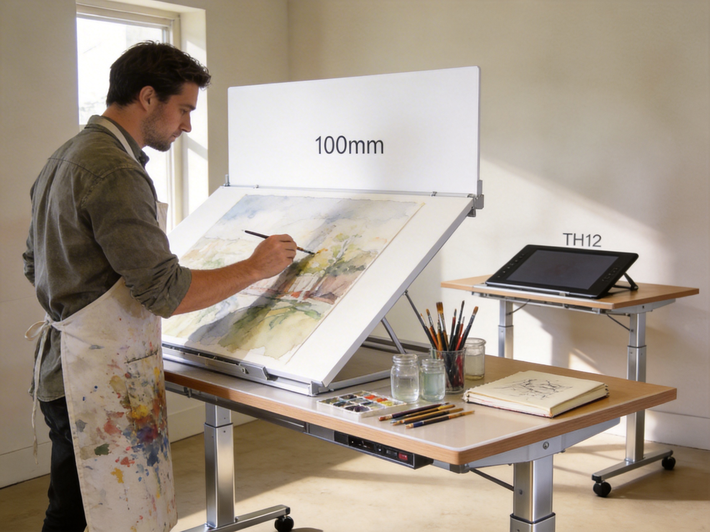 Creatives need desks that adapt to their tasks—drawing, painting, or using large monitors. The TH12 delivers: