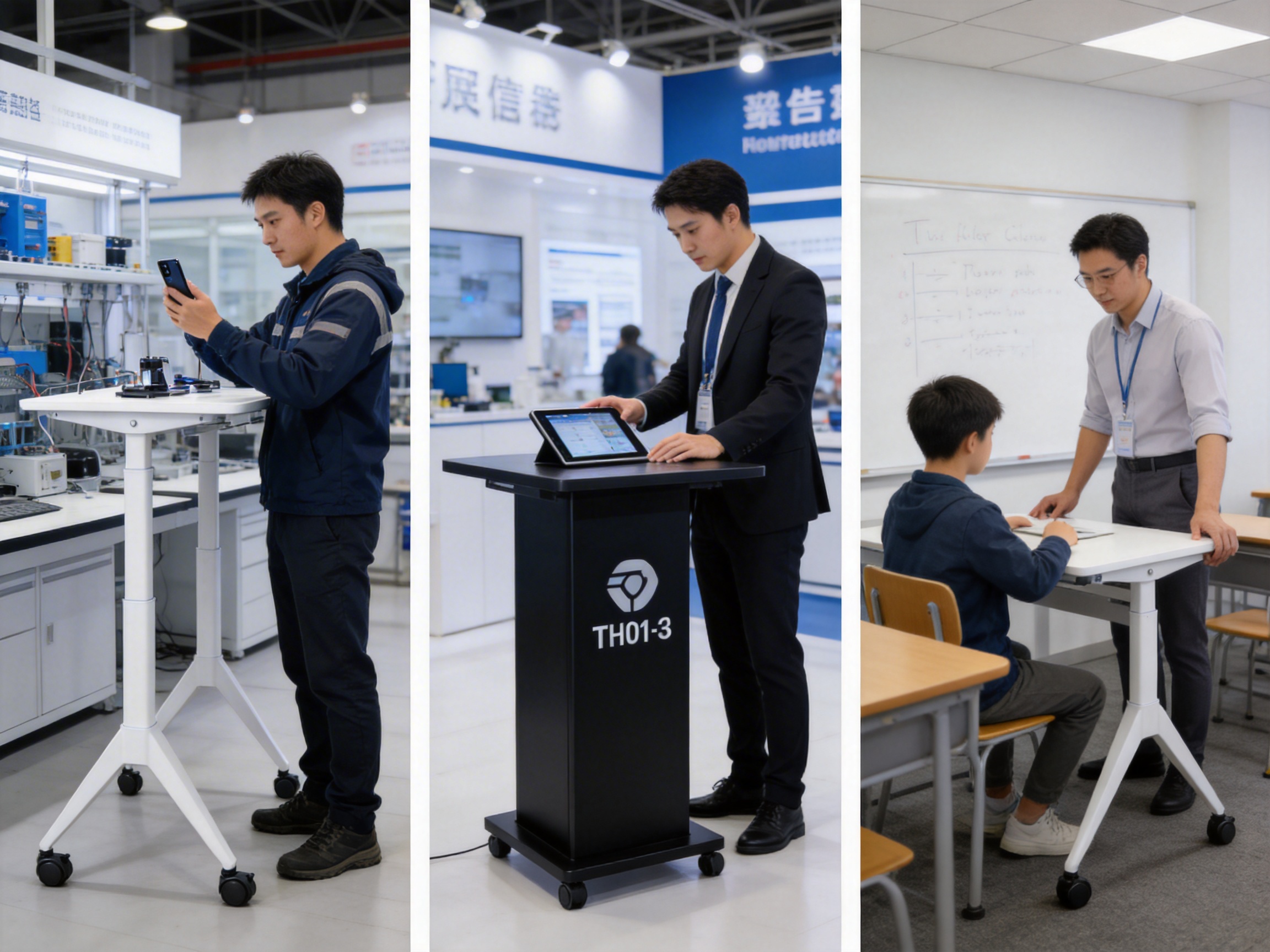 Sales teams in retail and tech industries need to demonstrate products to clients in different settings (e.g., conference rooms, trade shows). The TH01-3’s mobility makes it easy to transport, and its adjustable height allows salespeople to present products at eye level for clients (whether seated or standing). The custom color options also let businesses brand the desk with their logo or colors, enhancing brand visibility.