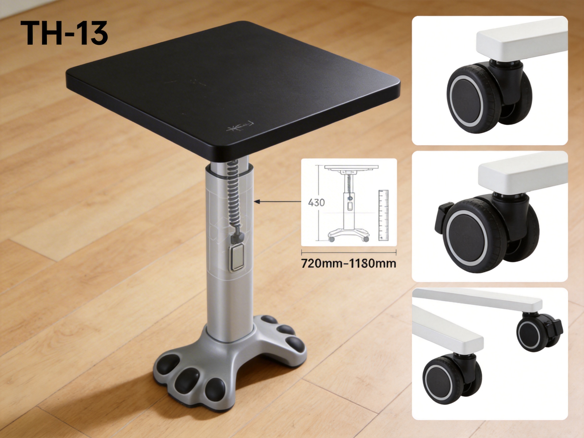 The TH-13 is a compact, user-friendly pneumatic standing desk designed to meet the needs of modern workers who value flexibility, portability, and ergonomics. Its core design philosophy centers on simplicity and functionality, with every component engineered to enhance the user experience. From its sturdy column structure to its lockable casters, the TH-13 is built to perform in diverse environments.